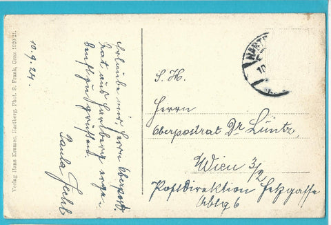 AK Hartberg, Brühl. (1920/21) Gelaufen, aber Briefmarke wurde entfernt. Kleinformat. Verlag: Frank. Zustand: obere Ecken geknickt.
