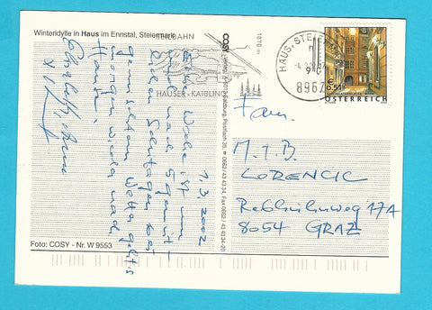 AK Haus im Ennstal. Gelaufen. Großformat. Verlag: Cosy. Nummeriert: W 9553. Zustand: im rechten unteren Eck berieben.