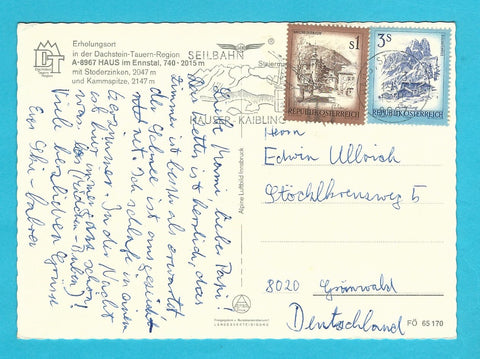 AK Haus im Ennstal. Gelaufen. Großformat. Verlag: Alpine Luftbild. Nummeriert: FÖ 65170. Zustand: rechtes oberes Eck geknickt, leicht fleckig.
