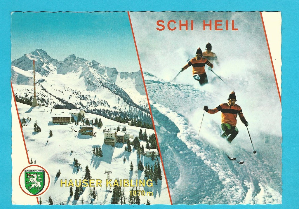 AK Hauser Kaibling. Schi Heil. Gelaufen. Großformat. Verlag: Alpine Luftbild. Nummeriert: FÖ 751. Zustand: gut.