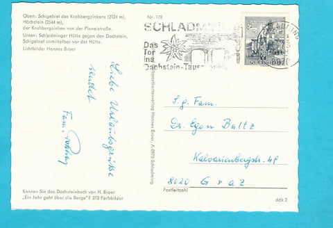 AK Herzliche Grüße aus dem Winter- und Frühjahrs Schiparadies. Planai Schladming. Gelaufen. Großformat. Verlag: Broer. Nummeriert:  178. Zustand: gut.
