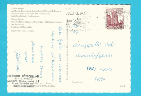 AK Herzliche Grüße vom Winterurlaub in Rohrmoos-Untertal. Gelaufen. Großformat. Verlag: Broer. Nummeriert: 157. Zustand: gut, linkes oberes Eck angeknickt.