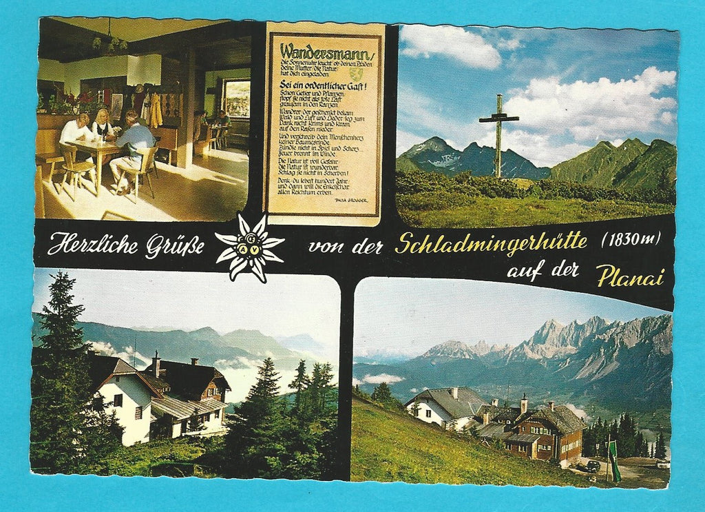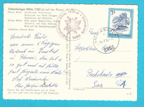 AK Herzliche Grüße von der Schladmingerhütte auf der Planai. Gelaufen. Großformat. Verlag: Broer. Nummeriert: 245. Zustand: leicht bestoßen.