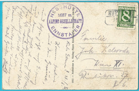 AK Hesshütte mit Hochtorstock. (1922) Gelaufen. Kleinformat. Verlag: Knollmüller. Nummeriert: 509/219. Zustand: rechte Ecken geknickt, stofffleckig.