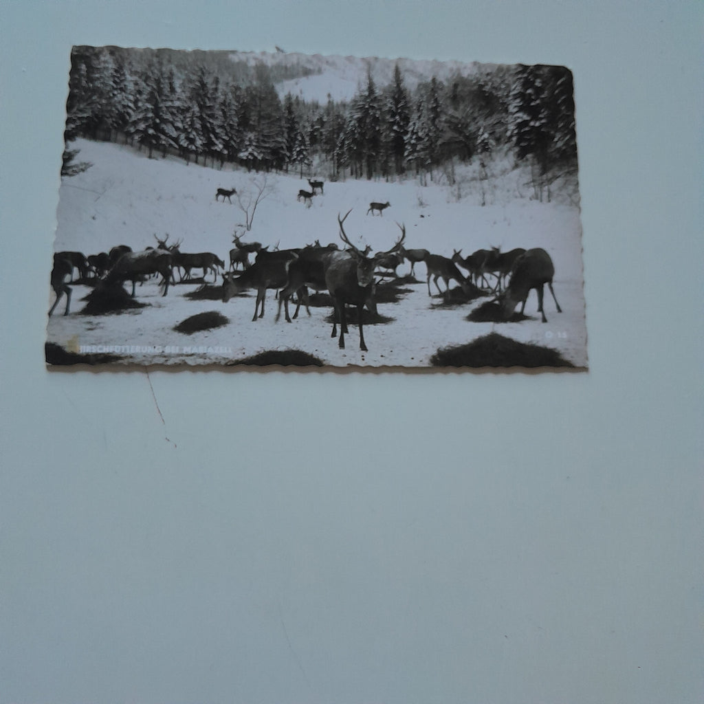 AK Hirschfütterung bei Mariazell. Gelaufen. Kleinformat. Verlag: Kuss. Nummeriert: 15. Zustand: gut.