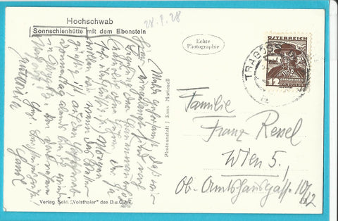 AK Hochschwab. Sonnschienhütte mit dem Ebenstein. Gelaufen. Kleinformat. Verlag: Kuss. Zustand: gut.