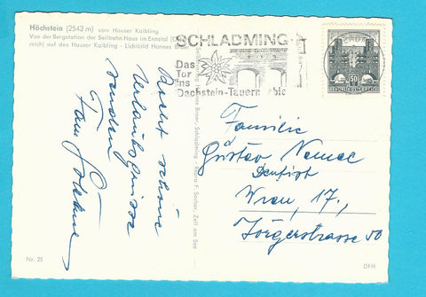 AK Höchstein vom Hauser Kaibling. Gelaufen. Großformat. Verlag: Broer. Nummeriert: 25. Zustand: gut, rechtes oberes Eck angeknickt.