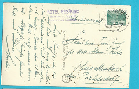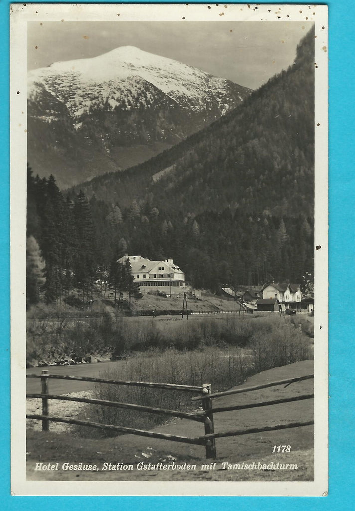 AK Hotel Gesäuse, Station Gstatterboden mit Tamischbachturm. (1933) Gelaufen. Kleinformat. Verlag: Wiatschka. Nummeriert: 1178. Zustand: fleckig.