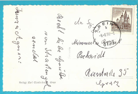 AK Judendorf-Straßengel. Gelaufen. Kleinformat. Verlag: Glantschnigg. Nummeriert: 45-47. Zustand: gut, rechtes unteres Eck wenig angeknickt.