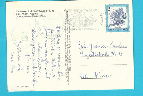 AK Kaiserau Oberst Klinke Hütte. Gelaufen. Großformat. Verlag: Hruby. Nummeriert: 7663. Zustand: gut, rechtes unteres Eck geknickt.