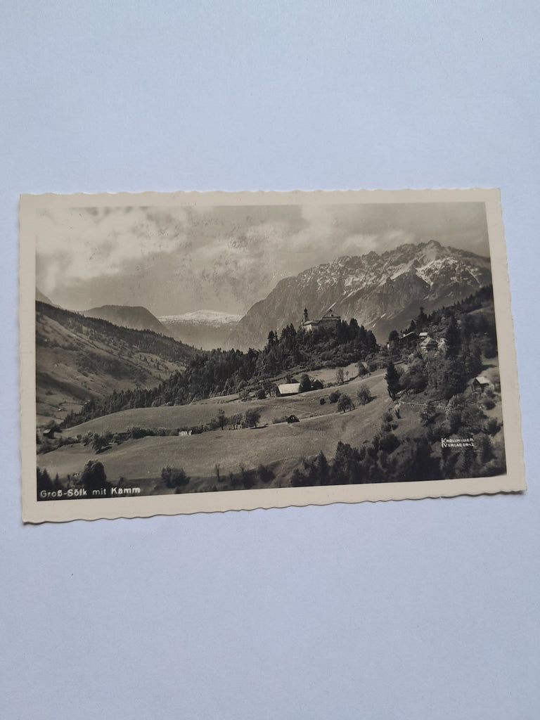 AK Groß-Sölk mit Kamm. (1937) Gelaufen. Kleinformat. Verlag: Knollmüller. Nummeriert: 585/201. Zustand: gut, linkes oberes Eck geknickt.