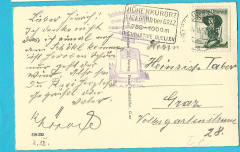 AK Schöckel, Seilbahn (1955) Gelaufen. Kleinformat. Verlag: Knollmüller. Nummeriert: 519/330. Zustand: Knick über der linken Bildhälfte.