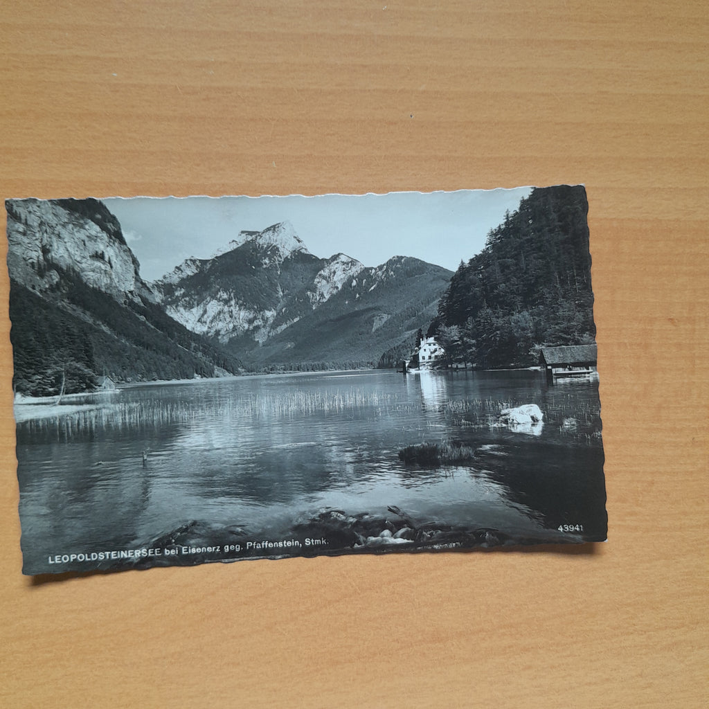 AK Leopoldsteinersee bei Eisenerz geg. Pfaffenstein. Gelaufen, aber Briefmarke wurde entfernt. Kleinformat. Verlag: Ledermann. Nummeriert: 43941. Zustand: gut.