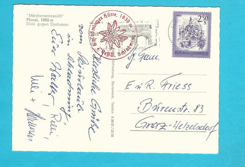 AK Märchenwiesenlift. Planai. Blick gegen Dachstein. Gelaufen. Großformat. Verlag: Kaserer. Zustand: gut, rechtes oberes Eck angeknickt.