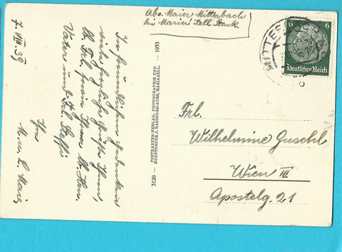 AK Mariazell. (1933) Gelaufen. Kleinformat. Verlag: Radinger. Nummeriert: 3120. Zustand: linke Ecken angeknickt.