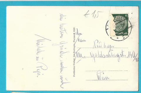 AK Mariazell. (1938) Gelaufen. Kleinformat. Verlag: Radinger. Nummeriert: 6117. Zustand: Knick am oberen Rand in der linken Hälfte.