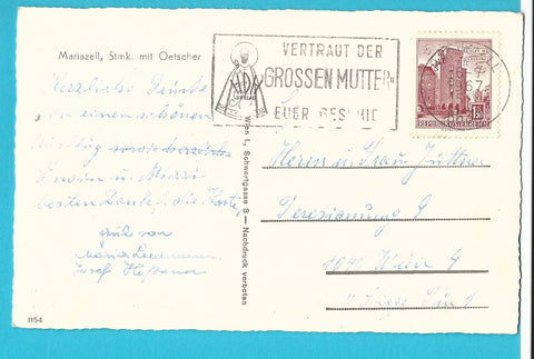 AK Mariazell. Gelaufen. Kleinformat. Verlag: HDH. Zustand: Knicke über der unteren Bildhälfte.
