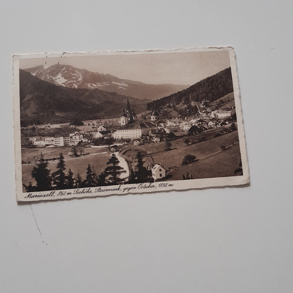 AK Mariazell. Gelaufen. Kleinformat. Verlag: Ledermann. Nummeriert: 18096. Zustand: leicht bestoßen.