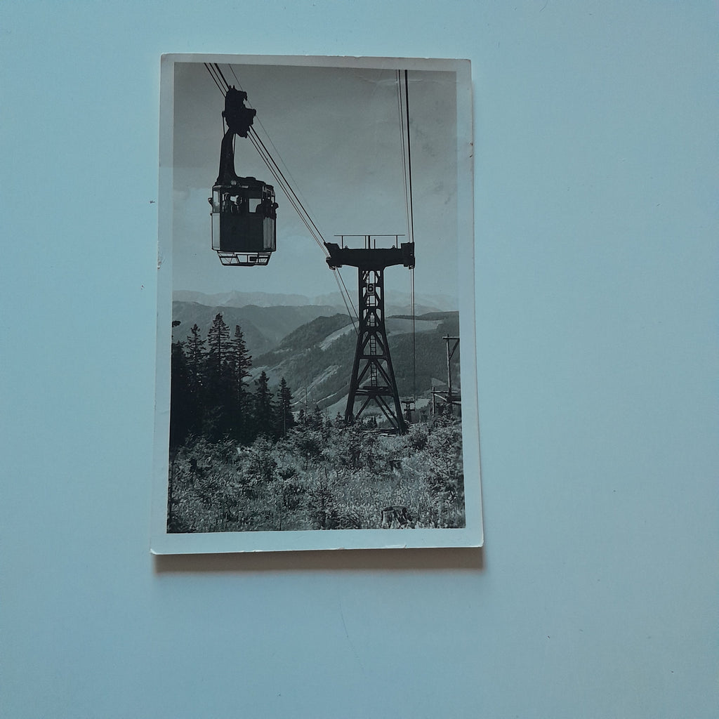 AK Mariazell. Bürgeralpe. Seilschwebebahn. Gelaufen, aber Briefmarke wurde entfernt. Kleinformat. Verlag: Kuss. Zustand: stärker bestoßen.