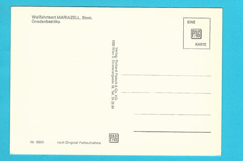 AK Mariazell. Gnadenbasilika. Ungelaufen. Großformat. Verlag: Pietsch. Nummeriert: 82031. Zustand: leichte Kleberückstände an Rückseite.