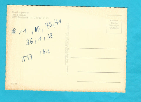 AK Mariazell. Hotel Alpenhof. Irene Flesch. Ungelaufen. Großformat. Verlag: Kuss. Nummeriert: CM 46. Zustand: gut, Rückseite vergilbt.