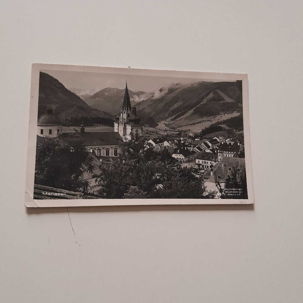 AK Mariazell. Gelaufen, aber Briefmarke wurde entfernt. Kleinformat. Verlag: Radinger. Zustand: linkes unteres Eck geknickt.