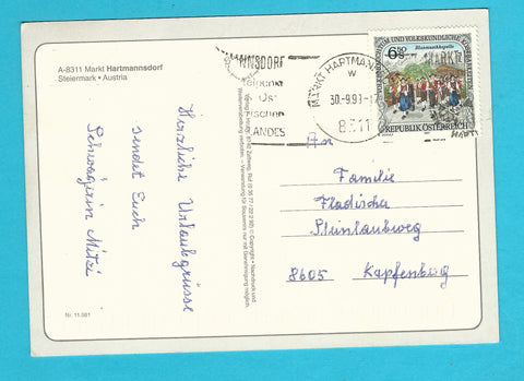 AK Markt Hartmannsdorf. Gelaufen. Großformat. Verlag: Hruby. Nummeriert: 11981. Zustand: stärker bestoßen.