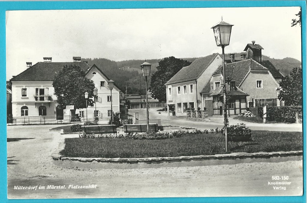 AK Mitterdorf im Mürztal. Platzansicht. Gelaufen. Kleinformat. Verlag: Knollmüller. Nummeriert: 582-150. Zustand: gut, am linken Rand geknickt.