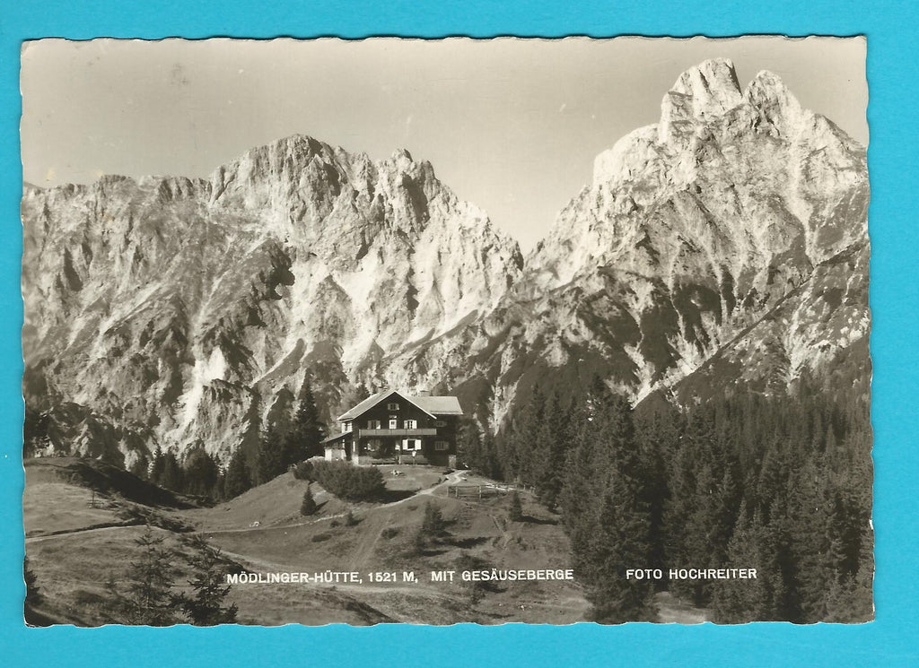 AK Mödlinger-Hütte mit Gesäuseberge. Gelaufen. Großformat. Verlag: Hochreiter. Zustand: gut.