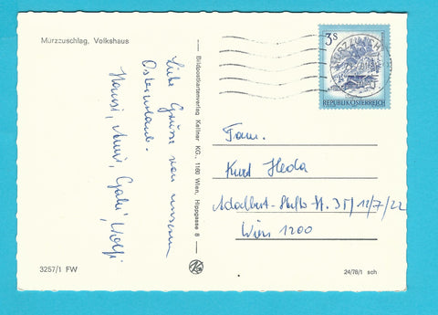 AK Mürzuschlag Volkshaus. Gelaufen. Großformat. Verlag: Kellner. Nummeriert: 3257/1. Zustand: gut.