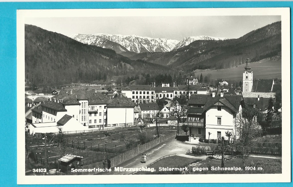 AK Mürzzuschlag gegen Schneealpe. (1958) Ungelaufen. Kleinformat. Verlag: Ledermann. Nummeriert: 34103. Zustand: gut.