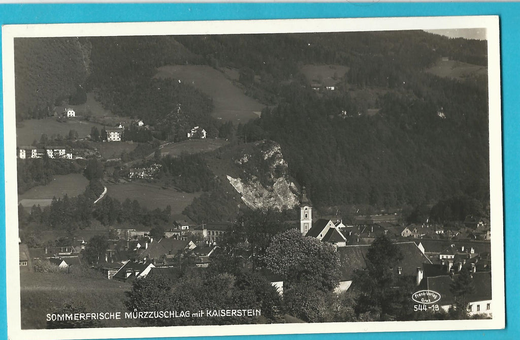 AK Mürzzuschlag mit Kaiserstein. (1941-42) Gelaufen. Kleinformat. Verlag: Frank Nummeriert: 544-13. Zustand: Knick über der rechten oberen Hälfte.
