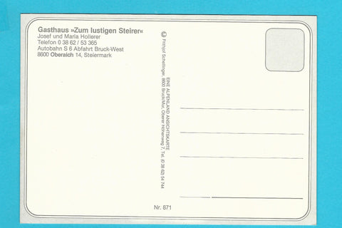 AK Oberaich 14. Gasthaus Zum lustigen Steirer. Josef und Maria Hollerer. Ungelaufen. Großformat. Verlag: Alpenland. Nummeriert: 871. Zustand: gut.