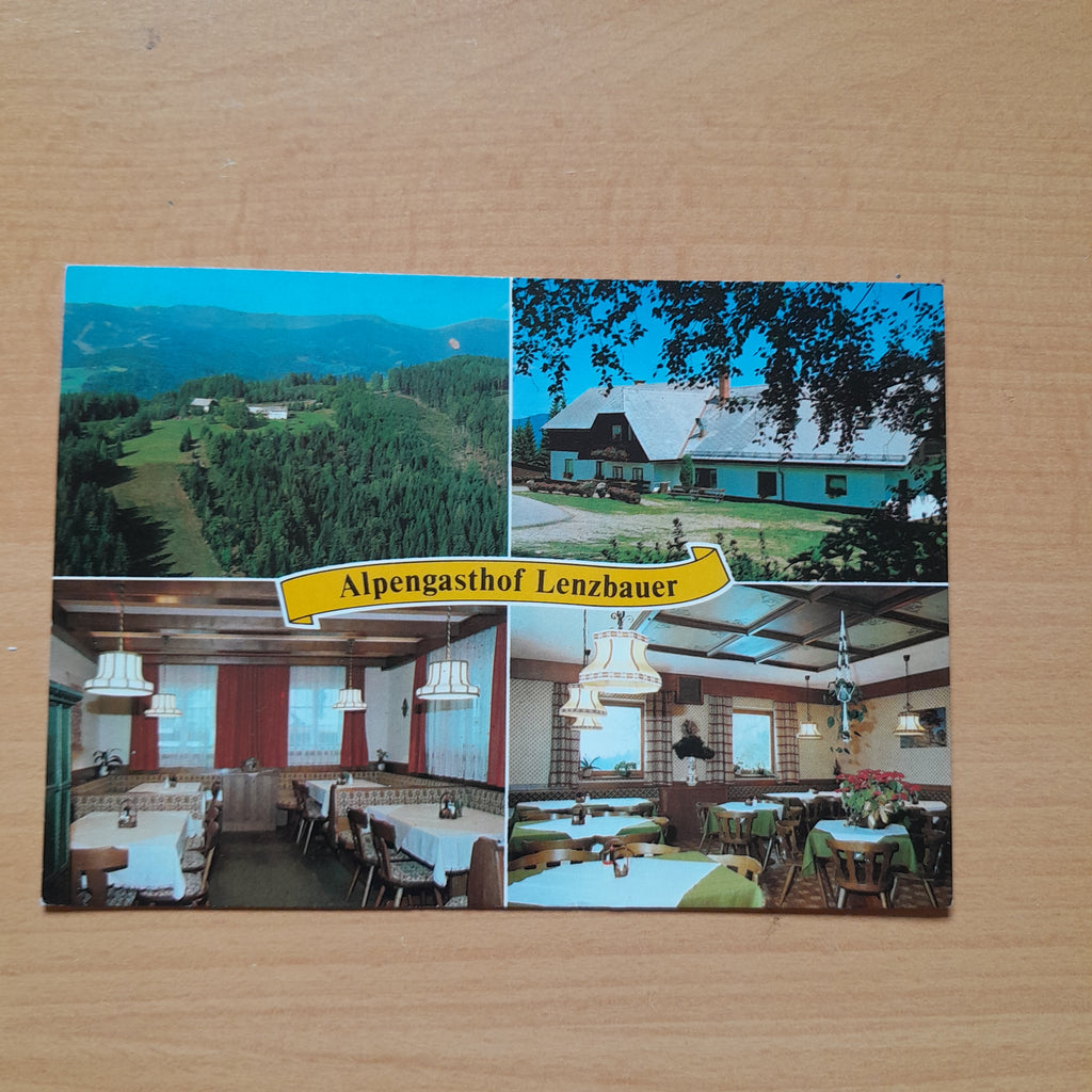 AK Alpengasthof Lenzbauer. Josef und Erika Freydl Gressenberg 51. Schwanberg. Gelaufen. Großformat. Verlag: Deix. Col. 685. Zustand: gut.