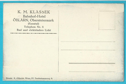 AK Öblarn. K. M. Klassek Bahnhof Hotel. Ungelaufen. Kleinformat. Verlag: Olbrich. Zustand: gut.