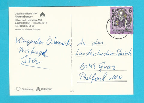 AK Öblarn - Sonnberg 12. Krennbauer. Urban und Hannelore Mali. Gelaufen. Großformat. Verlag: Rettenbacher. Zustand: gut.