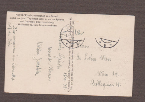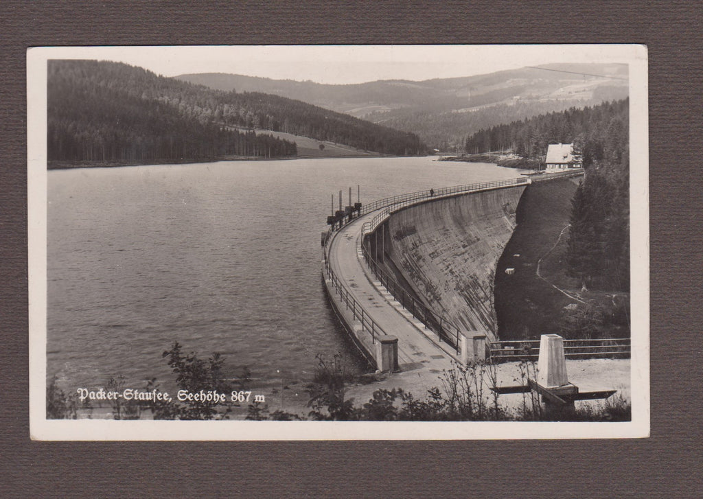 AK Packer Stausee. (1935) Gelaufen, aber Briefmarke wurde entfernt. Kleinformat. Verlag: Allmann. Zustand: gut, leichte Läsuren.