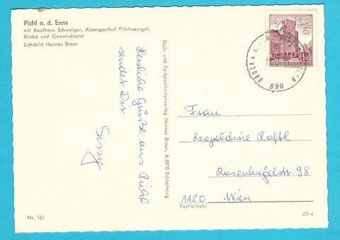 AK Pichl a.d. Enns mit Kaufhaus Schwaiger, Alpengasthof Pichlmayrgut... Gelaufen. Großformat. Verlag: Broer. Nummeriert: 161. Zustand: gut, rechtes oberes Eck geknickt.