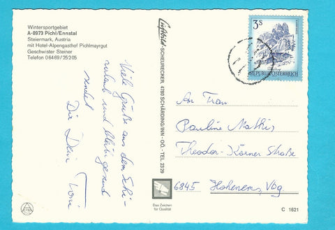 AK Pichl/Ennstal. Hotel Alpengasthof Pichlmayrgut. Geschwister Steiner. Gelaufen. Großformat. Verlag: Luftbild Scheurecker. Nummeriert: C 1621. Zustand: gut.