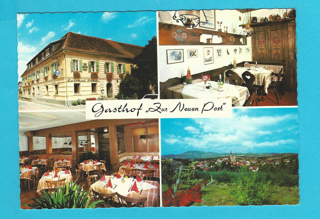 AK Pischelsdorf 20. Gasthof Zur neuen Post. Stibor. Großformat. Verlag: Baumgartner. Nummeriert: 3307. Zustand: gut, leicht bestoßen.