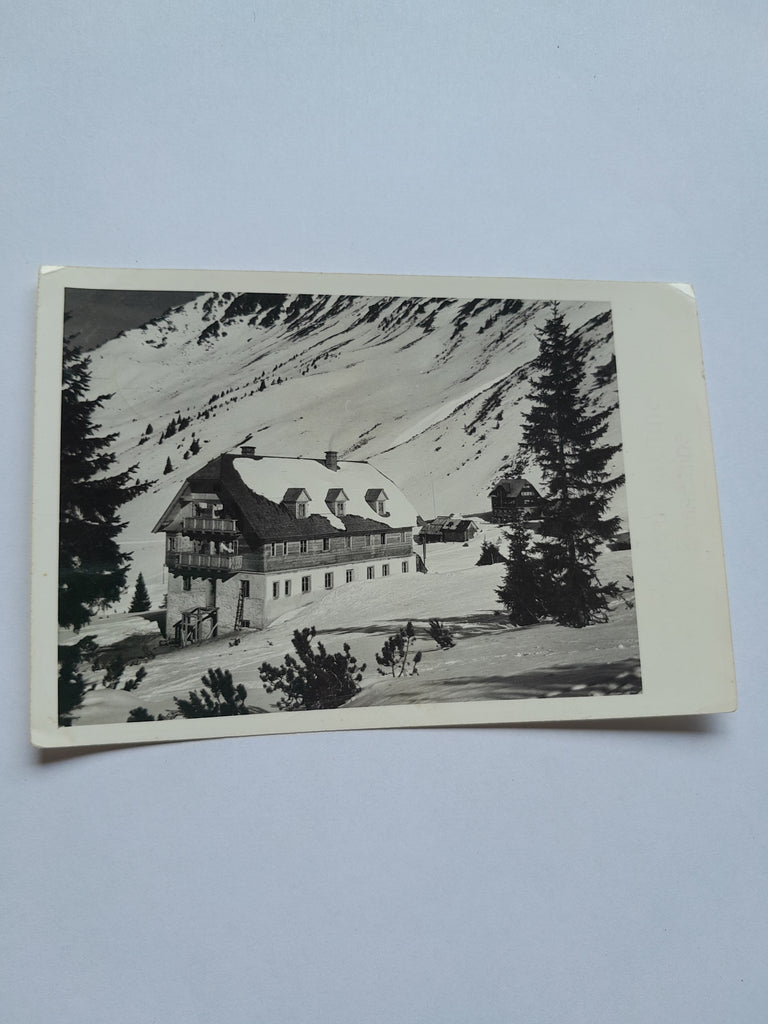 AK Planneralpe. Bergheim Leitner-Haus. Gelaufen, aber Briefmarke wurde entfernt. Großformat. Verlag: Hahn. Zustand: gut, leicht bestoßen.
