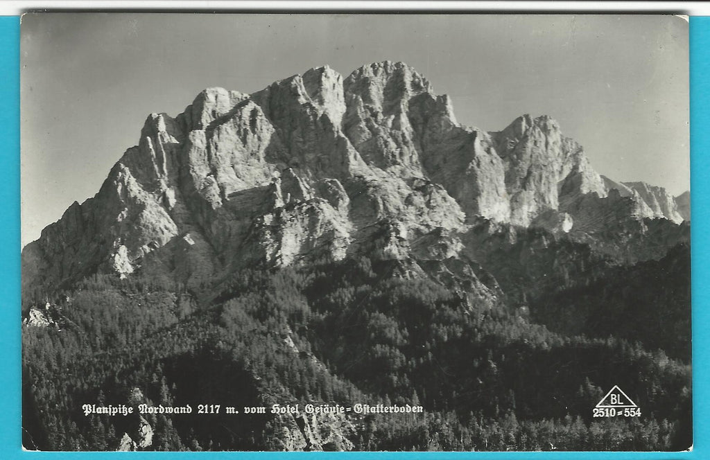AK Planspitze Nordwand vom Hotel Gesäuse Gstatterboden. Gelaufen. Kleinformat. Verlag: Brüder Lenz. Nummeriert: 2510-554. Zustand: leichte Knicke in linker Bildhälfte.