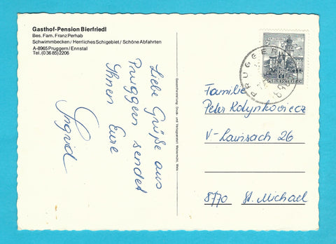 AK Pruggern. Gasthof Pension Bierfriedl. Bes. Fam. Franz Perhab. Gelaufen. Großformat. Verlag: Welsermühl. Zustand: gut, Ecken leicht angestoßen.