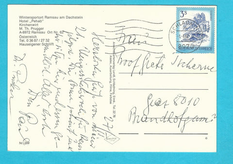 AK Ramsau 62. Hotel Pehab. Kirchenwirt. M. Th. Prugger. Gelaufen. Großformat. Verlag: Landl. Nummeriert: 289. Zustand: gut.