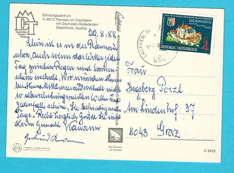 AK Ramsau am Dachstein. Gelaufen. Großformat. Verlag: Luftbild Scheurecker. Nummeriert: C 2413. Zustand: rechte Ecken geknickt.