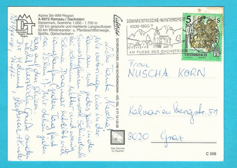 AK Ramsau am Dachstein. Gelaufen. Großformat. Verlag: Luftbild Scheurecker. Nummeriert: c 509. Zustand: leichte Knicke.