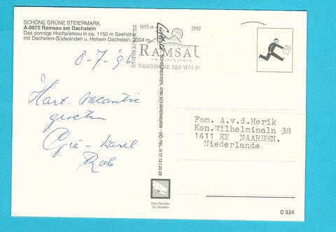 AK Ramsau am Dachstein. Gelaufen, aber Briefmarke wurde entfernt. Großformat. Verlag: Luftbild Scheurecker. Nummeriert: c 524. Zustand: gut.