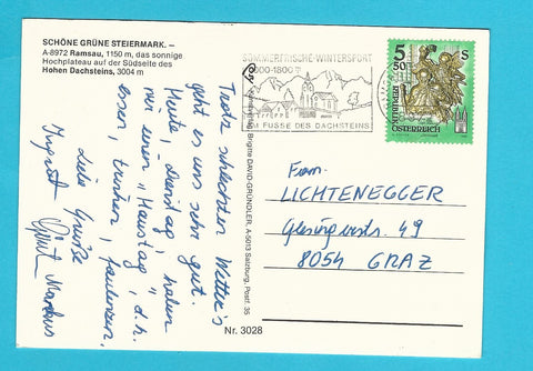 AK Ramsau am Dachstein. Gelaufen. Großformat. Verlag: Cosy. Nummeriert: 3028. Zustand: untere Ecken geknickt.