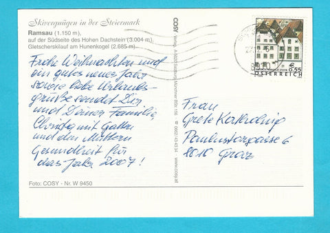 AK Ramsau am Dachstein. Gelaufen. Großformat. Verlag: Cosy. Nummeriert: W 9450. Zustand: gut.