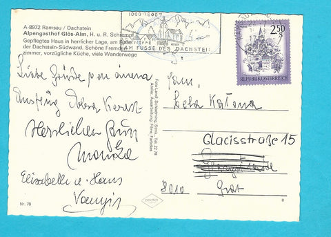 AK Ramsau am Dachstein. Alpengasthof Glös-Alm. H. u. R. Schrempf. Gelaufen. Großformat. Verlag: Landl. Nummeriert: 78. Zustand: gut.
